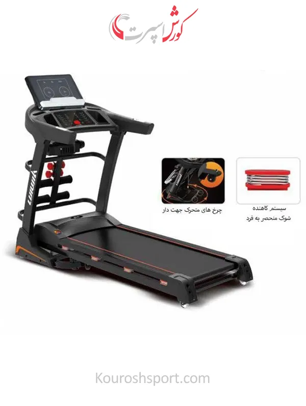 • پارامتر های نمایشی: سرعت،مسافت،کالری،شیب،ضربان قلب و اندازه گیری چربی
