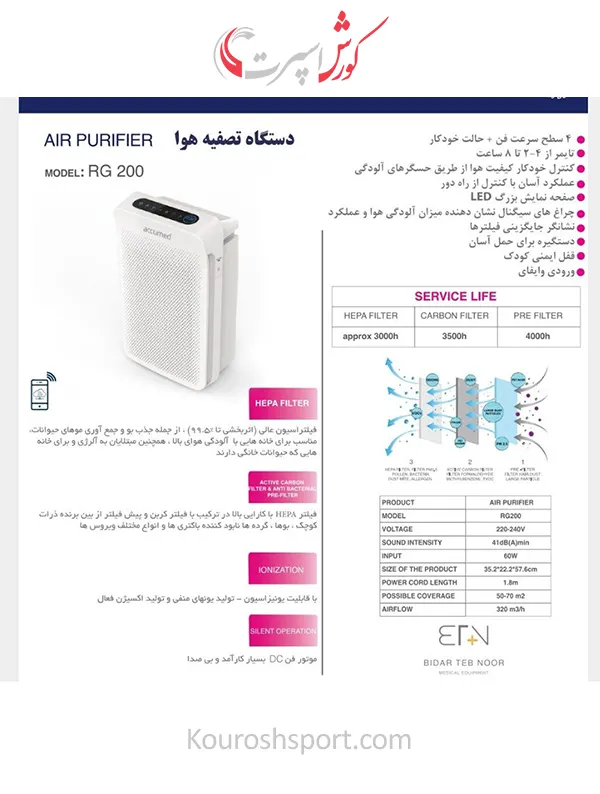 مشخصات دستگاه تصفیه هوا آکیومد Accumed مدل RG200